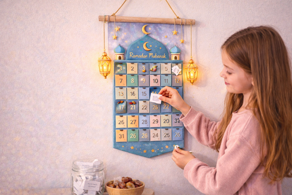 Ein Dankbarkeits-Kalender ist kein normaler Countdown-Kalender.Er ist ein stiller Begleiter durch den Ramadan, der Kinder dabei unterstützt, ihre Tage bewusster